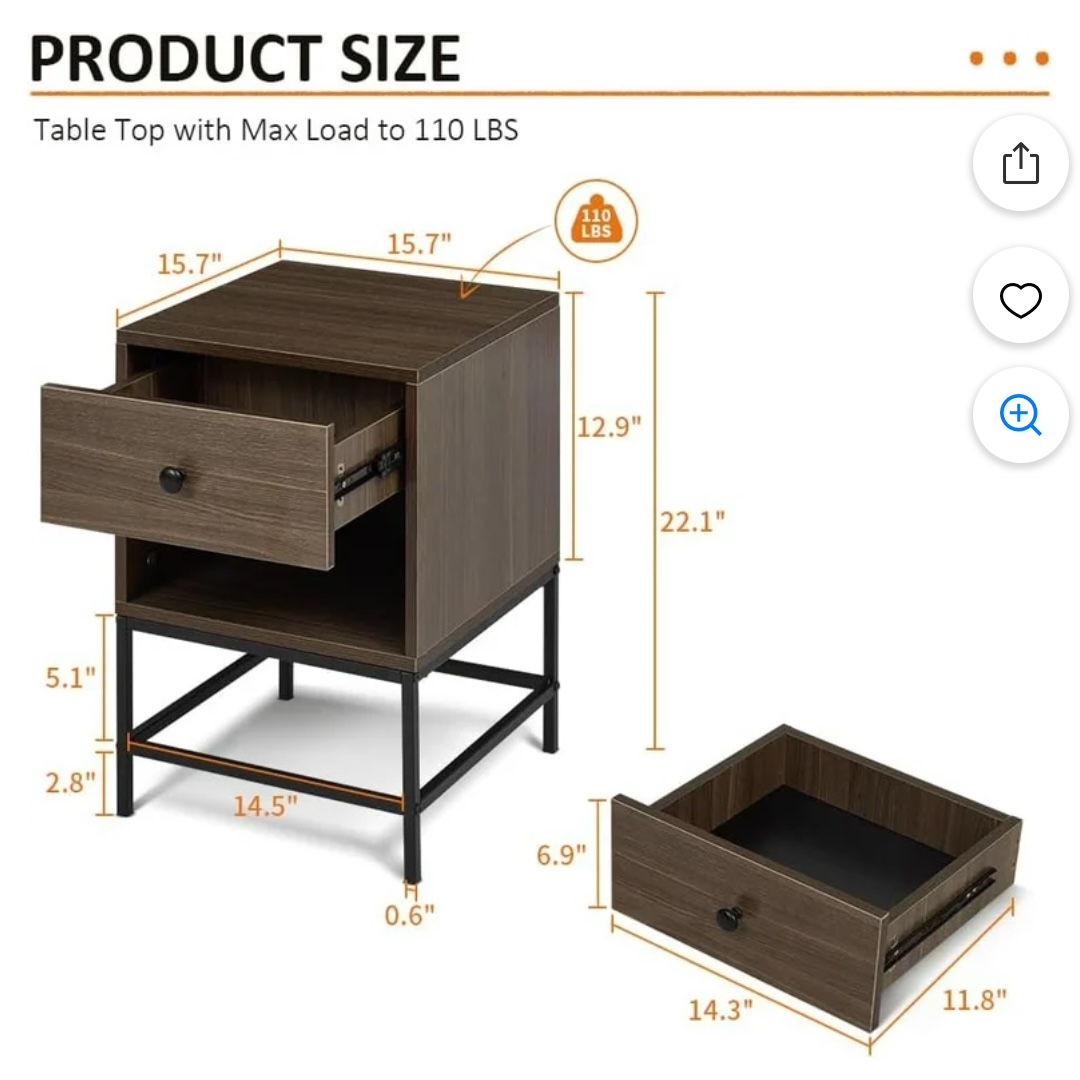 • 床头柜尺寸:15.7 英寸宽 x 15.7 英寸深 x 22.1 英寸高。