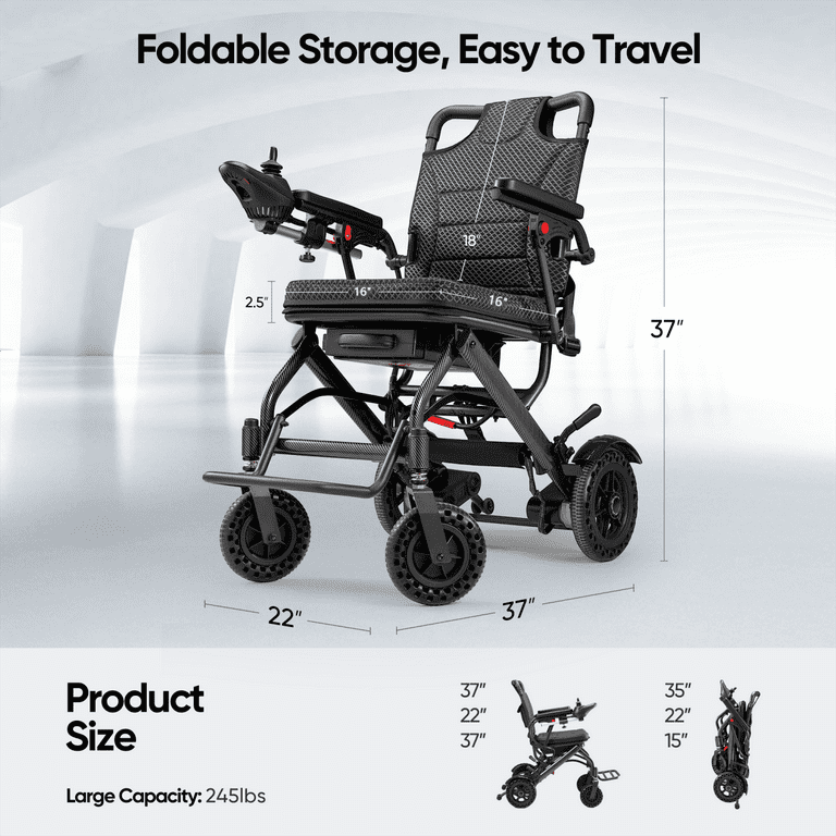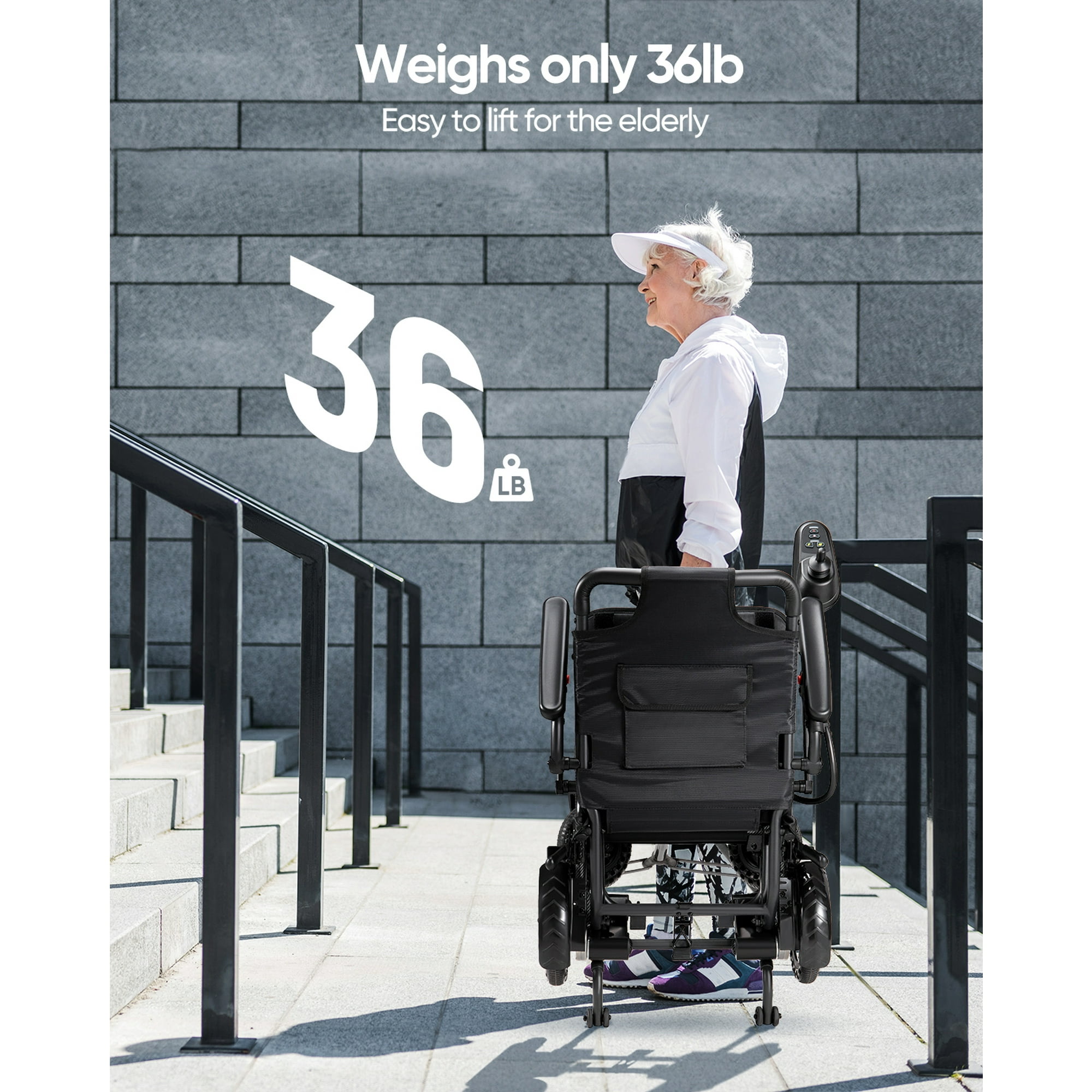 Morrean Electric Wheelchair Lightweight Folding Wheelchair for Adults Seniors Black